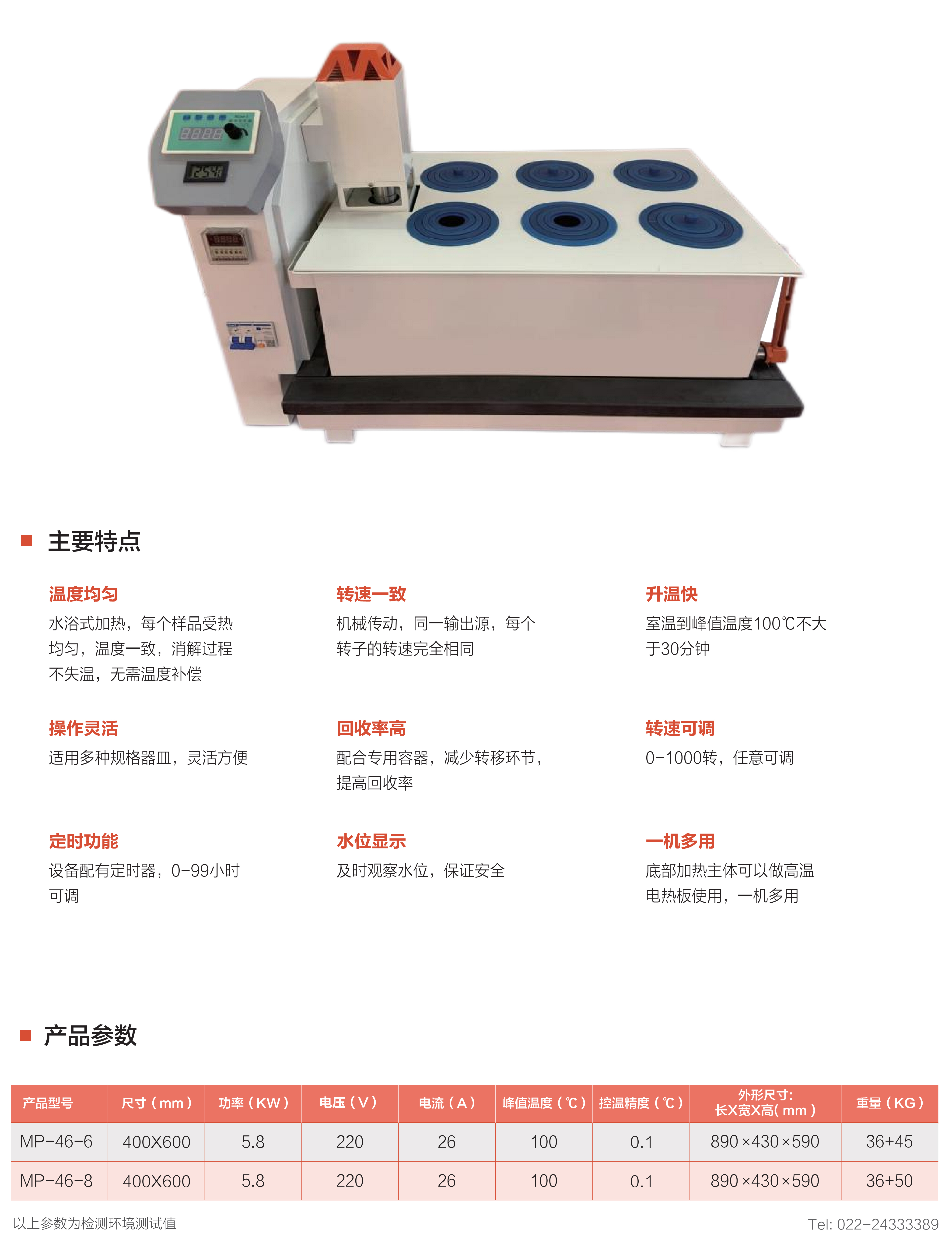 水浴式加热,每个样品受热均匀,温度一致,消解过程不失温,无需温度补偿